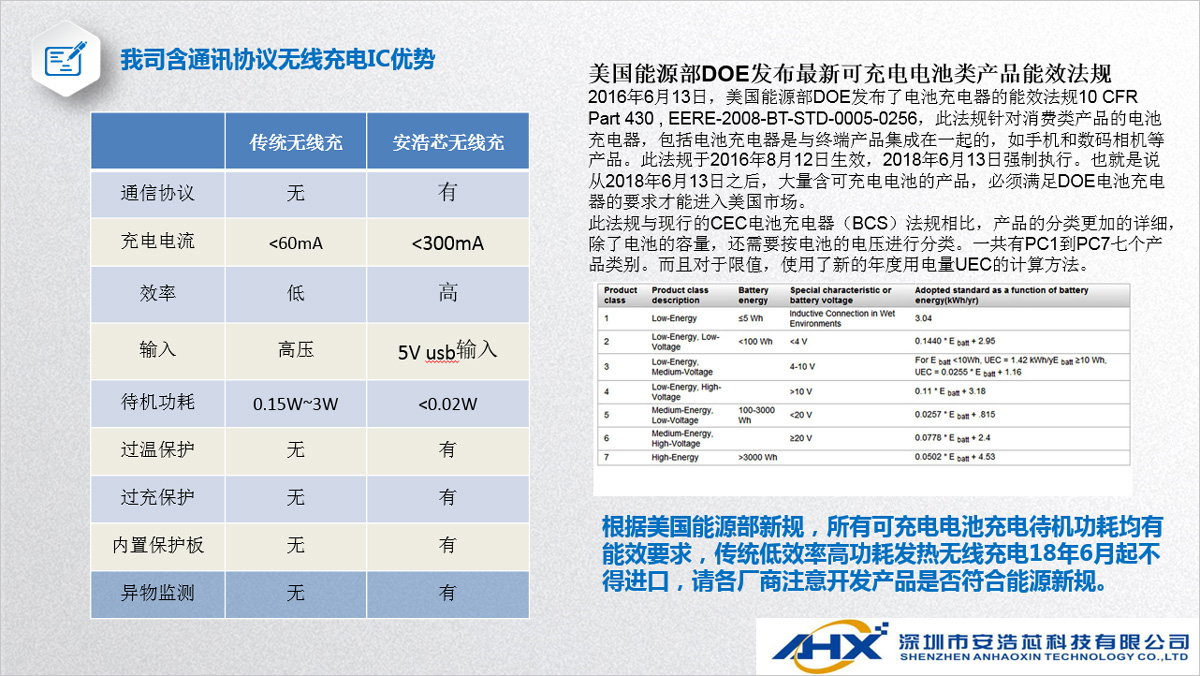 我司無(wú)線充電IC方案具有體高、成本優(yōu)勢(shì)明顯、應(yīng)用電路簡(jiǎn)單等特點(diǎn),發(fā)射和接收IC集成度高,帶有通訊協(xié)議,具有異物識(shí)別、過(guò)充保護(hù)、過(guò)放保護(hù)、短路保護(hù)等功能。